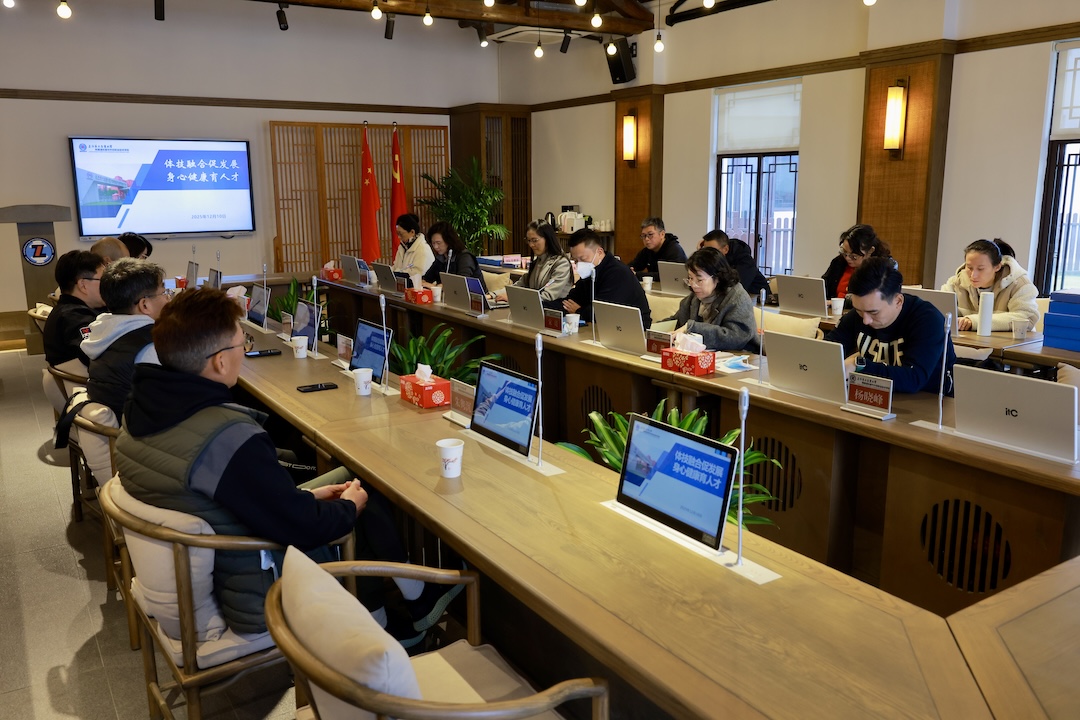 德育副校长俞燕围绕学校体育工作的推进情况作专题汇报。她系统阐述了以“运动能力、健康行为、体育精神”为核心素养的体育育人目标,介绍了“振鹭展翅”系列主题活动的开展情况,并围绕课程改革、竞训体系、条件保障等方面,分享了学校在体育工作高质量发展中的实践与思考。