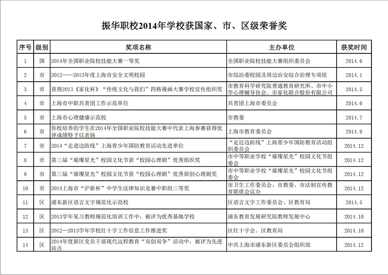 振华职校2014年获国家、市、区荣誉奖项