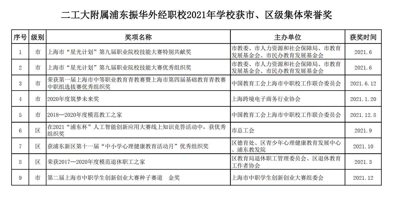 振华职校2021年获国家、市、区荣誉奖项