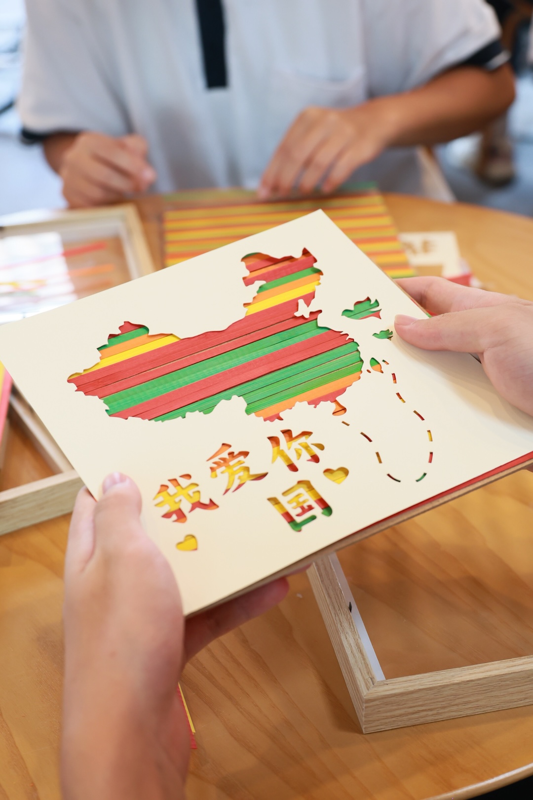 活动接近尾声时,特教少年们捧着自己亲手编织的竹编画,脸上洋溢着自豪与喜悦。这些作品有的色彩鲜艳,有的造型独特,每一幅都凝聚着孩子们的心血与情感。他们小心翼翼地将自己的作品摆放在一起,组成了一幅壮丽的爱国画卷,仿佛在诉说着对祖国母亲的无尽热爱与祝福。
