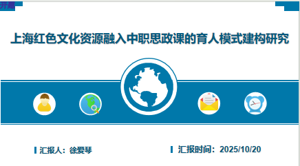 会议开始,徐爱琴老师围绕《上海红色文化资源融入中职思政课的育人模式建构研究》进行开题汇报。该课题以习近平总书记“用好红色资源”重要指示精神为根本遵循,系统梳理上海红色文化资源,致力于构建具有本土特色的“三域四式五阶”大思政教学模式,即通过“教材、社团、网络”三大载体,运用“沉浸式、互动式、案例式、体验式”四种教学方法,构建“红色课程、德育活动、校园文化、赛事实践、社会服务”五阶育人路径。研究将开发数字化资源库、校本教材及教学案例集,并建立“知识+情感+实践”三维评价体系,全面提升中职思政课的育人实效与感染力。