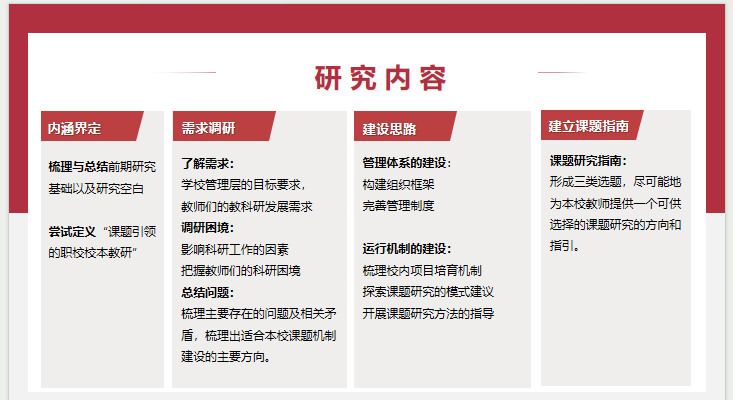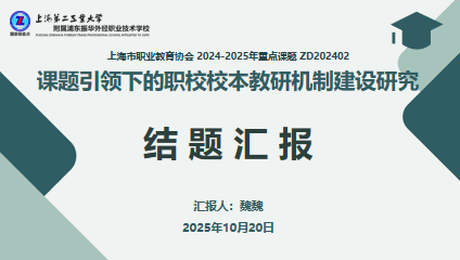 魏魏副校长就上海市职业教育协会2024-2025年重点课题《课题引领下的职校校本教研机制建设研究》作结题汇报。该研究基于对214名教师的调研,系统分析职校教师在教科研中面临的目标错位、资源匮乏、动力不足等现实困境,构建了以“管理体系为基础、运行机制为核心、保障体系为支撑”的校本教研新生态。研究通过层级式组织架构与跨部门协同模式明确权责,提出“总课题引领、教师协作、个人探索、校企共研”四种课题研究新模式,并配套形成《校本课题选题指南》与《教科研工作三年发展规划》,为教师提供从“选题-方法-写作”的全流程指导。营造“教学即研究、成长即成果”的教研文化,有效激活教师内生动力,实现了从“制度驱动”到“文化自觉”的教研生态转型。