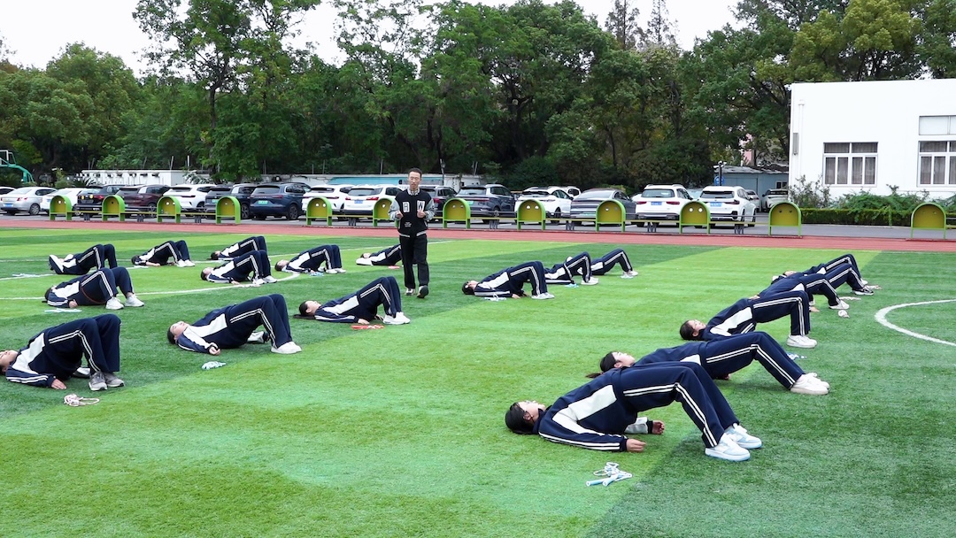 在教学质量核验环节,专家们深入课堂,随机听取了体育教师王安杨的《鼓韵绳舞-花式跳绳动作组合与创编》现场授课。课堂上,王安杨老师以精湛的专业技能和生动的教学方法,将鼓韵与绳舞巧妙融合,学生们在欢快的节奏中跃动身姿,专家们纷纷点头称赞,现场氛围热烈而活跃。