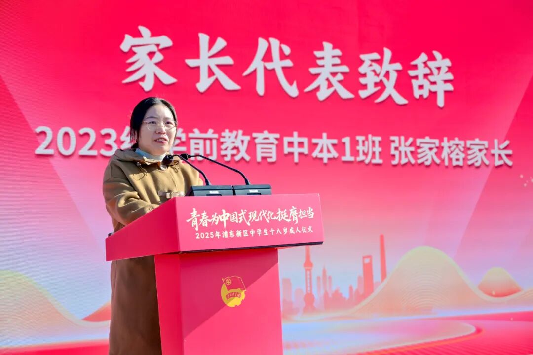 毛力熊老师作为师长代表深情致辞,勉励全体学子要立大志、让理想之光照亮青春航向,担责任、让恒心之光照亮成长之路,勇奋斗、让青春之光绽放浦东热土,以奋斗为笔,书写属于自己的青春答卷。