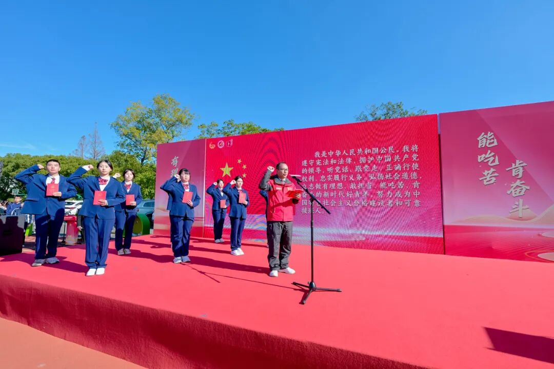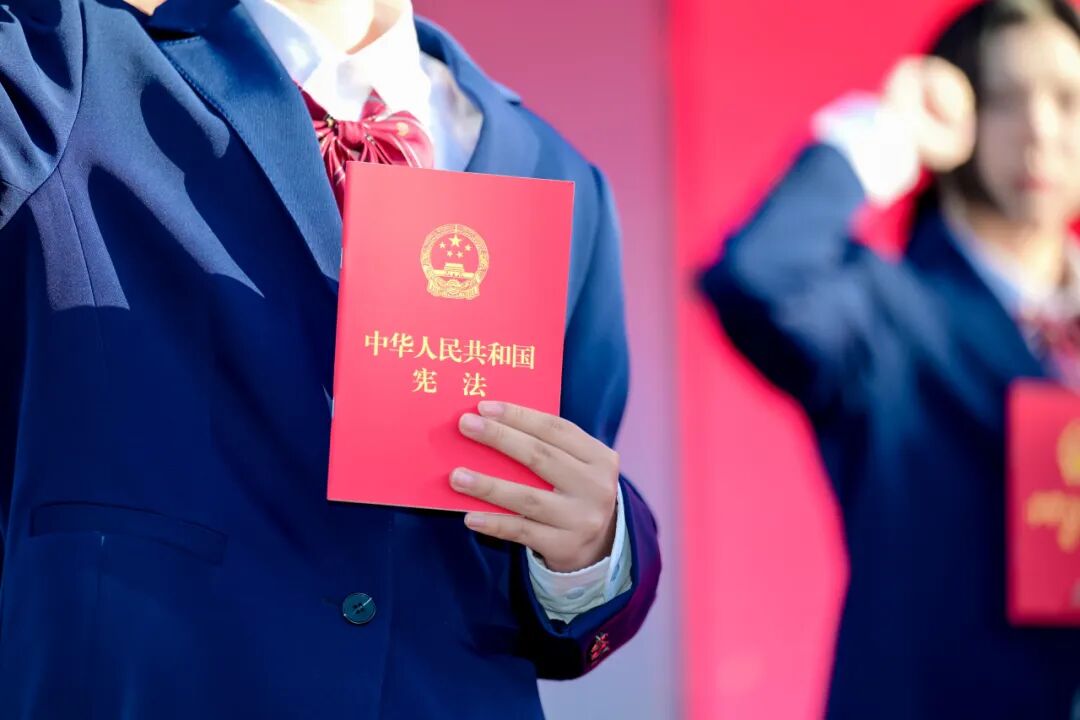 全体青年学子手捧《中华人民共和国宪法》,在浦东优秀青年引领行动突出典型蓝木盛的带领下,面向国旗庄严宣誓,立志做有理想、敢担当、能吃苦、肯奋斗的新时代好青年,努力成为中国特色社会主义合格建设者和可靠接班人。