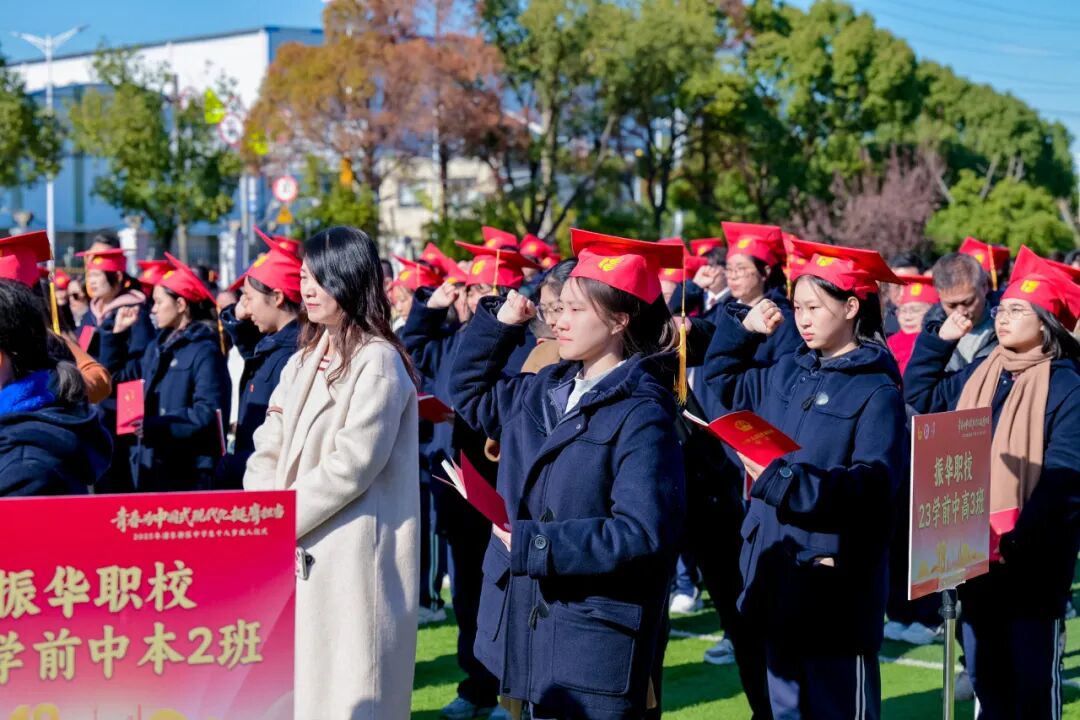 围绕“青春为中国式现代化挺膺担当”主题,仪式上,以主题视频形式带来了习近平总书记对青年的殷切嘱托,号召广大同学坚定不移听党话、跟党走,让青春在全面建设社会主义现代化国家的火热实践中绽放绚丽之花。活动现场,振华职校合唱团带来合唱《璀璨星光》,悠扬的歌声展现出中学生的青春风貌与蓬勃朝气。