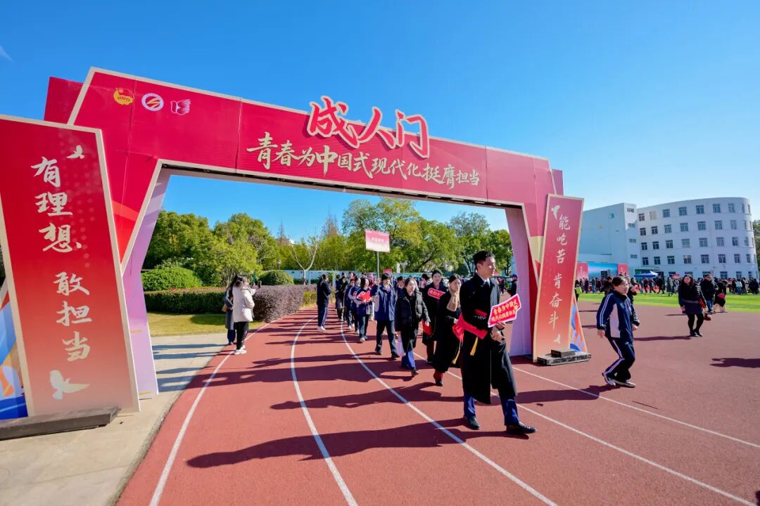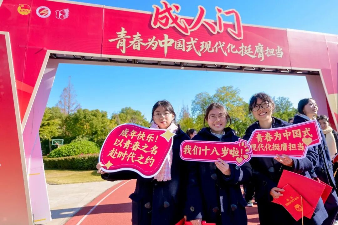 活动在激昂澎湃的《青春》朗诵中进入尾声,学生们在师长和家长的见证下,依次跨过“成人门”,这一刻,标志着他们正式以成年公民的身份踏上人生新征程。
