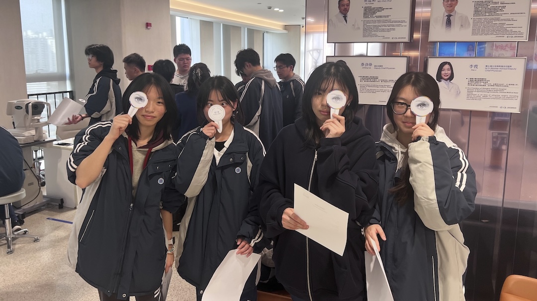 随后,同学们走进爱尔眼科特色眼健康科普展览馆。从展馆的设计布局、科普内容的策划到互动装置的运维管理,同学们真切观察到,医疗企业在专业服务之外,还能通过科普场馆搭建起与社会大众沟通的桥梁。大家还借助专业设备直观感受了不同近视度数下的视觉效果——低度近视时视野边缘模糊、远处文字虚化,高度近视则连眼前物体的轮廓都会扭曲;白内障模拟体验更让大家真切体会到视物重影、色彩暗沉、视野如同蒙着一层磨砂玻璃的状态,同时还参与了盲人体验馆的沉浸式感官体验。这些经历不仅让同学们深刻理解了眼部疾病对生活的影响,也让大家在参观中意识到,必须好好爱护眼睛、文明用眼。